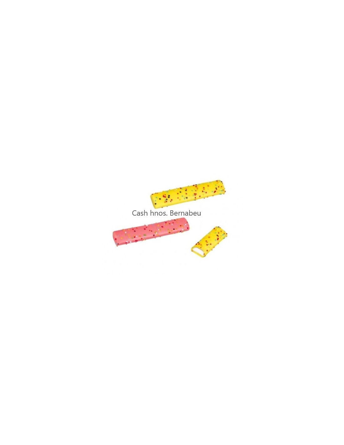 Mega crujientes marshmallow recubierto de chocolate de dos colores: rosa y amarillo y con bolitas de colores estuches 75 unidades